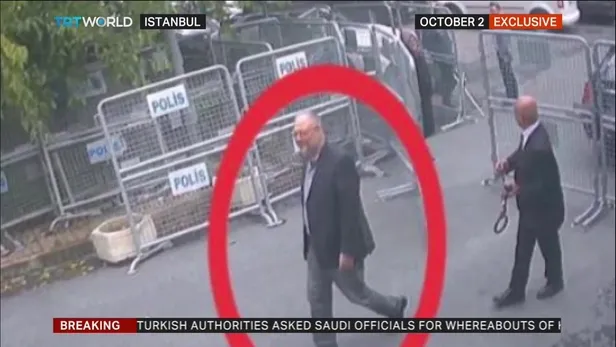 Suudi Arabistan Başkonsolosluğunda katledilen gazeteci Cemal Kaşıkçı'nın son anları böyle görüntülendi. Kaşıkçı akıbetinden habersiz bir şekilde ölüme yürürken yüzündeki tebessüm gözlerden kaçmıyor.