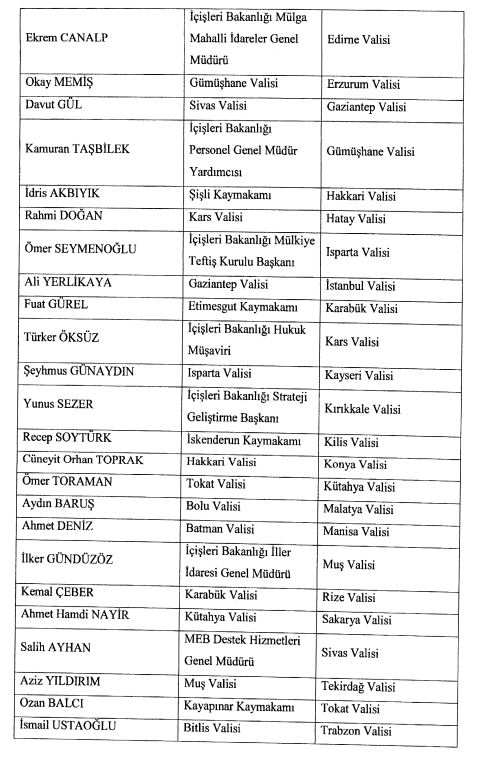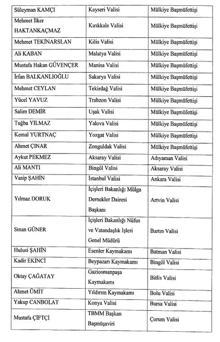 Resmi Gazete'de yayımlanan Valiler Kararnamesi ile 21 ilin valisi Mülkiye Başmüfettişliği görevine atandı. Ankara Valisi Ercan Topaca da görevden alınan valiler arasında yer aldı.