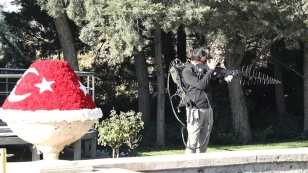 Cumhuriyet'in 95. yıl dönümü nedeniyle Anıtkabir'de düzenlenen törenler esnasında geniş güvenlik önlemleri alındı. Cumhurbaşkanlığı Koruma Daire Başkanlığı personeli tarafından Anıtkabir'e getirilen 'İhasavar cihazı' dikkat çekti.