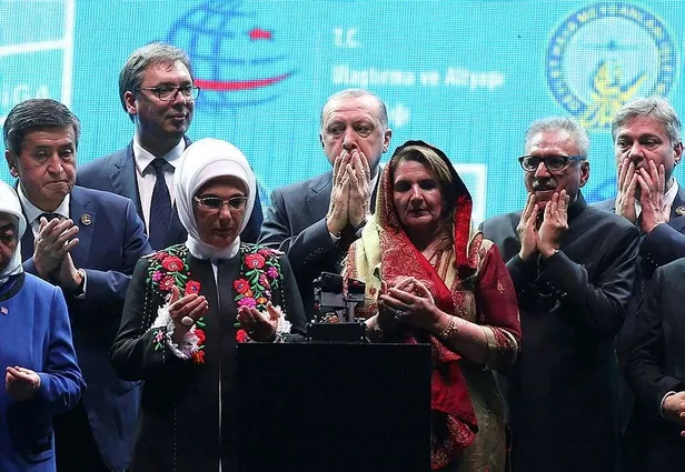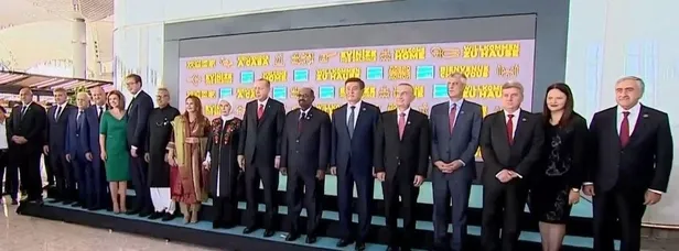 16.58: Cumhurbaşkanı Recep Tayyip Erdoğan ve eşi Emine Erdoğan ile devlet başkanlarının yer aldığı aile fotoğrafı çekildi.