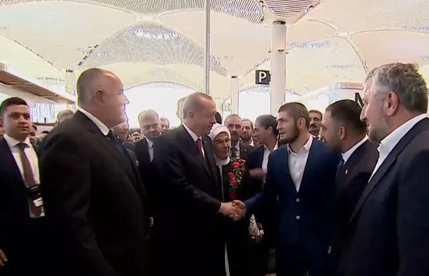 Cumhurbaşkanı Erdoğan Dağıstanlı Dövüşçü Khabib Nurmagomedov'la selamlaştı.