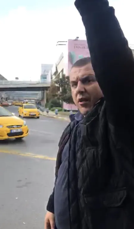 Atatürk Havalimanı’nda taksi durağı kahyası olduğu iddia edilen bir şahıs, iki kadının valizlerini bagaja koymaya çalışan UBER sürücüne müdahale etti. Valizleri koydurtmadığı gibi “Senin ağzını burnunu kırarım” diyerek tehditler savuran şahıs cep telefonu kamerasına yansıdı.