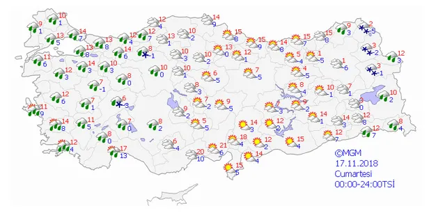 17 KASIM 2018 CUMARTESİ HAVA DURUMU