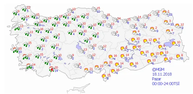 18 KASIM 2018 PAZAR HAVA DURUMU