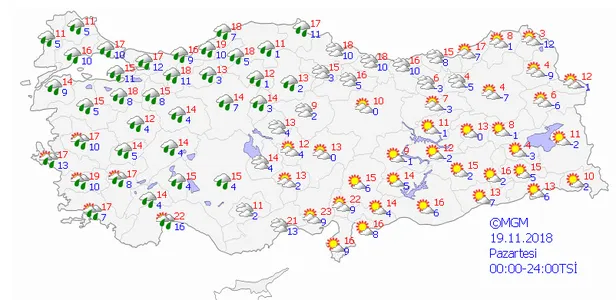 19 KASIM 2018 PAZARTESİ HAVA DURUMU