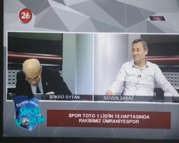 Yerel bir televizyon kanalında spor programı sunan Şükrü Oytan, canlı yayın sırasında bir an duraksadı ve başını masanın üzerine koydu. Diğer yorumcunun durumu farkederek, Oytan'n yanına gitmeye çalıştığı sırada Oytan dengesini kaybederek, oturduğu sandalyeden düştü.