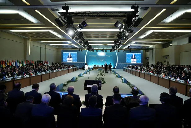 Cumhurbaşkanı Recep Tayyip Erdoğan, İslam İşbirliği Teşkilatı Ekonomik ve Ticari İşbirliği Daimi Komitesi'nde konuştu. Müslüman ülkelere önemli mesajlar veren Erdoğan 1. Dünya Savaşı ile ilgili olarak da, "Her ne kadar yüz sene önce bitmiş olsa da bu savaşın coğrafyamızda bıraktığı enkaz henüz tam anlamıyla kaldırılamamıştır" dedi. Cumhurbaşkanı Erdoğan, "Yerli ve milli paramızı kullanmaktan başka çıkış yolu yok" diye konuştu.
