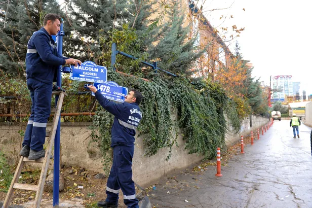 Fen İşleri Daire Başkanlığına bağlı Numarataj Şube Müdürlüğü ekiplerince caddenin adının bulunduğu direkteki "1478. Cadde" tabelası indirilerek, yerine "Malcolm X" yazılı tabela yerleştirildi.
