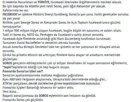 Kaos lobisi sadece Türkiye'yi değil dünyayı karıştırmaya başladı. Fitil Fransa'da ateşlendi, Belçika ve Hollanda'ya sıçradı. Gazetemiz Genel Yayın Yönetmeni Ergün Diler, George Soros tarafından organize edilen bu gösterilerin yakında Macaristan ve Türkiye'ye sıçrayacağını yazdı. Türkiye düşmanlarının planlarını deşifre eden Diler, Fransa'daki protestolar dahil tüm eylemlerin Facebook üzerinden organize edildiğini, Soros'un Facebook ile anlaştığını ve Türkiye'deki olası gösterileri de George Soros'un oğlu Alexander'ın organize edeceğini yazdı. "Sosyal füze" başlığıyla 29 Kasım günü yayınlanan yazıyla tüm planları açığa çıkan kaos lobisi ilk füzesini gönderdi. Yıllardır Ergün Diler'in yazılarının 175 bin kişi tarafından takip edildiği resmi Facebook hesabı bir anda kapatıldı. Her fırsatta özgürlükten bahseden ve bu bahaneyle PKK ve DEAŞ gibi terör örgütlerin propaganda sayfalarını bile engellemeyen Facebook'un, on binlerce kişinin takip ettiği sayfayı hiçbir uyarı vermeden, kendilerine atılan hiçbir mesajı cevaplamadan kapatması ise bu karanlık düzenin gerçek yüzünü de gösterdi.
