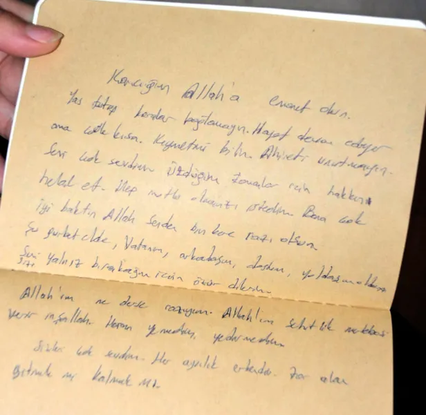 Allah'ım ne derse razıyım. Allah'ım şehitlik mertebesi verir inşallah. Haram yemedim, yedirtmedim. Sizleri çok sevdim. Her ayrılık erkendir. Zor olan gitmek mi, kalmak mı" ifadelerine yer verdi.