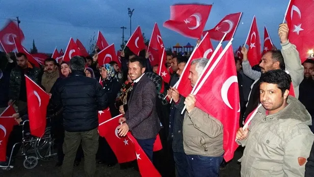Şanlıurfa'nın Suriye sınırındaki Ceylanpınar ilçesinde vatandaşlar ellerinde Türk bayrağı ile yürüyerek Fırat Nehri'nin doğusuna olası askeri harekata destek verdi.