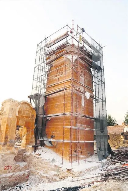 611 yıllık caminin mihrabı büyük uğraşlarla söküldü.