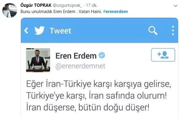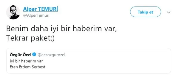 İstanbul Cumhuriyet Başsavcılığı, FETÖ'cü Eren Erdem hakkında kaçma şüphesi nedeniyle tahliye kararına itiraz etti. İtirazı kabul eden üst mahkeme aynı gerekçeyle Eren Erdem hakkında yakalama kararı çıkardı. FETÖ'cü Eren Erdem'e yönelik yakalama kararını sevinçle karşılayan sosyal medya kullanıcıları duygularını Twitter'dan paylaştı: