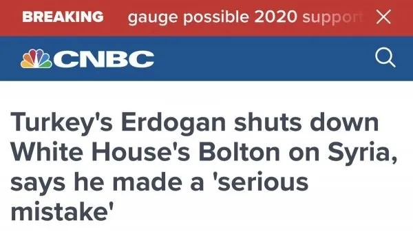 Bir diğer haber sitesi CNBC ise, "Erdoğan Bolton'a Suriye konusunda kapıları kapattı." yorumunu yaptı.