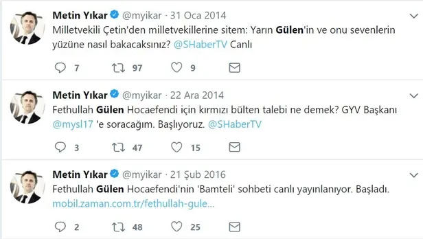 İmamoğlu'nun ziyaret ettiği, ""göstermiş olduğu ilgi ve alaka için" minnettar olduğu o isim sözde gazeteci, darbecilerin yayın organının fedaisi olan FETÖ'cü Metin Yıkar. İmamoğlu'nun ziyaret ettiği M.Yıkar'ın Twitter paylaşımları terörist elebaşı Gülen'e olan yakın ilgisini gözler önüne seriyor!