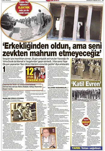 CHP İzmir Büyükşehir Belediye Başkan Adayı Tunç Soyer, "12 Eylül dönemi üzerinden bugüne dair bir şey çıkarmaya çalışmak hiç doğru değil, bu çok yanlış. Eski yaraları kaşımanın hiç bir faydası yok. Bugün yepyeni bir Türkiye, yepyeni bir kent için uğraşmak gerekiyor. Bunları geride bırakmak lazım." diyerek babası Nurettin Soyer'in korkunç işkencelerini örtbas etmeye çalıştı. Muhsin Yazıcıoğlu, o dönem MHP ve Ülkücü Kuruluşlar davası savcısı Nurettin Soyer’in yaptırdığı işkenceleri bu sözlerle anlatmış: Arkadaşlarımıza orada akılalmaz işkenceler yapıldı. Çarmağa gerildiler, cereyana verildiler, falakaya vuruldular ve başlarından soğuk su dökülerek kış vakti soğukta bırakıldılar.