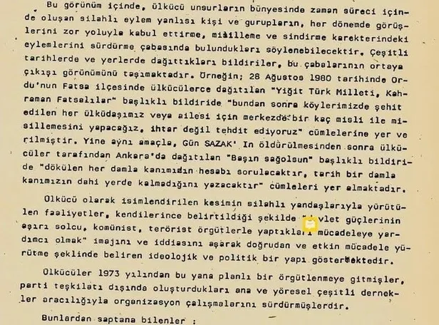 İşte Soyer'in 12 Eylül darbesinde Alparslan Türkeş ve Ülkü Ocakları hakkında hazırladığı iddianameden bölümler;