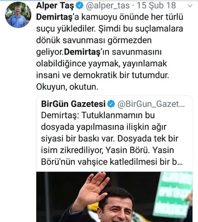 Birçok il ve ilçede terör sempatizanı isimleri aday gösteren CHP ve sözde milliyetçi İP'in Zillet İttifakı, yaklaşan 31 Mart yerel seçimleri için de tam gaz devam ediyor. Son olarak CHP'nin Kadıköy adayı Şerdil Dara Odabaşı'nın HDP/PKK destekçisi olduğu skandalının ortaya çıkmasının ardından, CHP Beyoğlu için de Selahattin Demirtaş ve Figen Yüksekdağ'ı savunan Alper Taş'ı aday gösterdi.