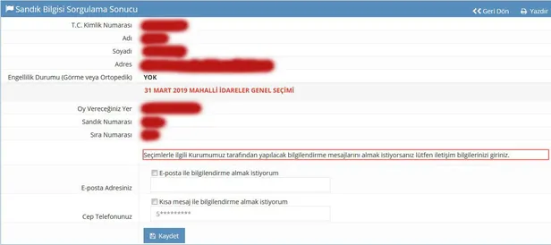 31 Mart 2019 Pazar günü gerçekleştirilecek Mahalli İdareler Genel Seçimleri için oy kullanılacak sandık bilgileri YSK tarafından yayımlandı. Bu işlemler, YSK'nın resmi internet sitesi üzerinden ve e-Devlet Kapısı sistemi üzerinden görüntülebilecek.
