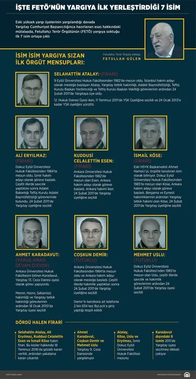 Eski yüksek yargı üyelerinin yargılandığı davada Yargıtay Cumhuriyet Başsavcılığınca hazırlanan esas hakkındaki mütalaada, Fetullahçı Terör Örgütünün (FETÖ) yargıya yerleştirdiği ilk 7 isim ortaya çıktı.