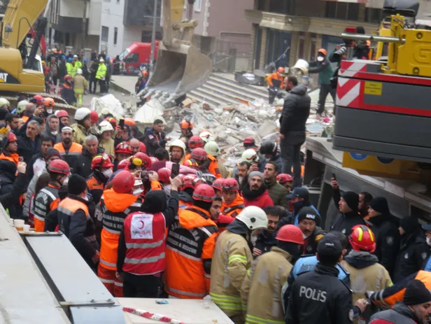 Binanın enkazında, AFAD, itfaiye ve sağlık ekipleri arama kurtarma çalışması yapıyor. Çalışmalara arama kurtarma köpekleri de eşlik ediyor. Olay yerinde sessiz olunması konusunda sürekli anons yapılıyor.