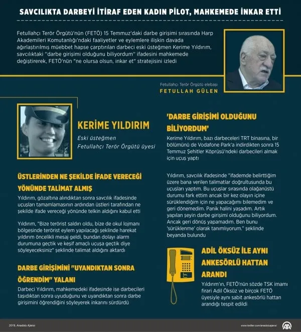 Darbe girişimi sırasında, helikopterle darbecilerin sevk işlemini yapan eski pilot Kerime Yıldırım da eylemlerde aktif şekilde yer aldığı, görüntülerle de kanıtlanmasına rağmen inkar yolunu seçenlerden.