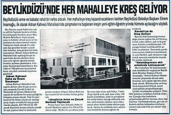 İmamoğlu'nun 2014 yerel seçimlerinden sonra, verdiği 'Her mahalleye bir kreş' vaadi hiç gerçek olmadı. 10 mahallesi bulunan Beylikdüzü'de, sadece Adnan Kahveci Mahallesi'nde kreş açıldığı belirlendi. Bugün ise İmamoğlu, yerine getirmediği vaatlerin aynısını yeniden tekrarlamış oldu.