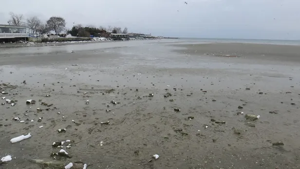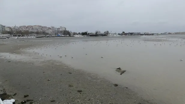 Son dakika haberine göre, Silivri'de kar yağışı ile birlikte etkili olan fırtına nedeniyle deniz suyu yaklaşık 150 metre geri çekildi. Bu nedenle kum adası oluşurken, çöpler de ortaya çıktı.