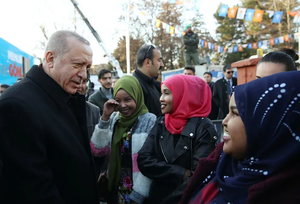 Koroyu alkışlayan ve birlikte hatıra fotoğrafı çektiren Cumhurbaşkanı Erdoğan, öğrencilere kenevir tohumundan üretilen bez torba içinde Ali Fuat Başgil'in "Gençlerle Başbaşa" kitabını hediye etti.