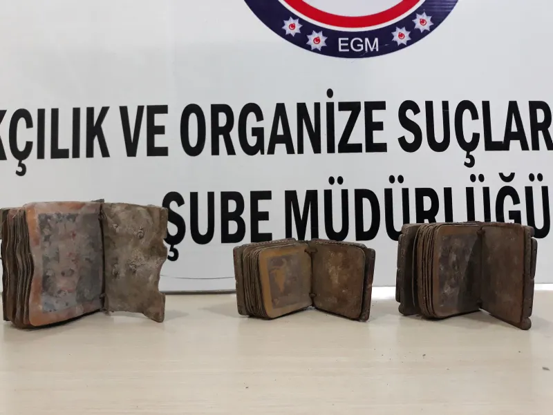 Bir süre sonra durdurulan minibüste yapılan aramada koltukların altına gizlenmiş 3 İbranice el yazması deri kitap, 9 sikke ile bir kadın figürlü heykel ele geçirildi.