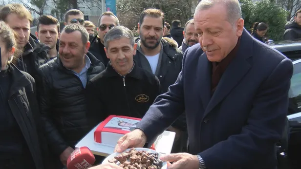 Erdoğan daha sonra kendisine ikram edilen tatlıyı vatandaşlara ve basın mensuplarına ikram etti.