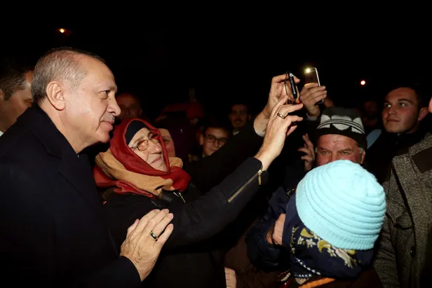 Erdoğan, kısa konuşmasının ardından hemşehrilerine bez torbalarda çay hediye ederken, birkaç bayanın otobüsün içinde taleplerini dinleyerek ardından Merkez mahallesindeki evine geçti.