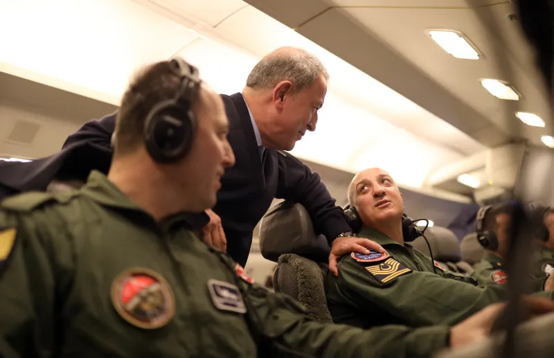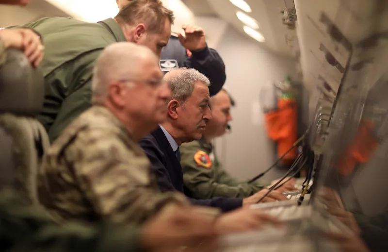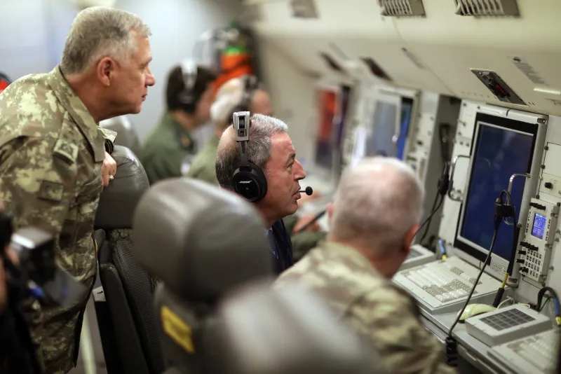Milli Savunma Bakanı Hulusi Akar, Genelkurmay Başkanı Orgeneral Yaşar Güler ve kuvvet komutanlarıyla Mavi Vatan Tatbikatı'nı, Hava Kuvvetleri Komutanlığının Havadan Erken İhbar ve Kontrol (HİK) uçağından takip etti.