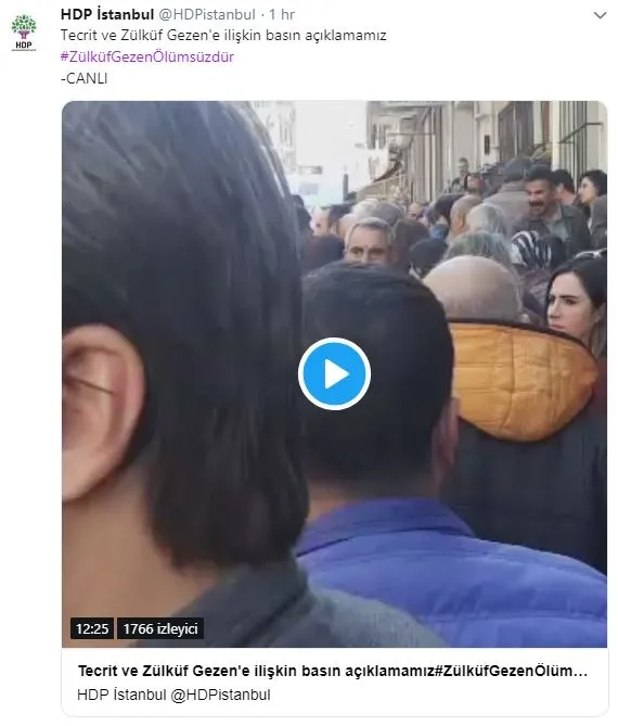 CHP, İyi Parti ve Saadet Partisi'nin ittifak ortağı HDP, resmi Twitter hesabı üzerinden, PKK elebaşı Abdullah Öcalan için Tekirdağ cezaevinde kendisini asan PKK'lı terörist Zülküf Gezen için #ZülküfGezenÖlümsüzdür tagı açarak polis katillini kahraman ilan etti. HDP İstanbul İl Eşbaşkanı Cengiz Çiçek ise "Toprağa düşenlere and olsun ki, mutlaka kazanacağız." diyerek ayaklanma çağrısı yaptı. Teröriste destek olmak için İzmir Alsancak’ta provokasyon yapan HDP’li vekiller Murat Çepni ve Serpil Kemalbay’a polis, "Terörist ağzıyla konuşma. Bir köpek geberdi diye burada laf yaptırtmam." diyerek tokat gibi yanıt verdi. PKK'lı terörist Zülküf Gezen, 2007 yılında Diyarbakır'daki bombalı saldırıda polis memuru Hüseyin Özdemir'i şehit ederek, 2'si polis memuru 6 kişiyi yaralamıştı.