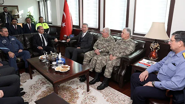 Bakan Akar ve komutanları, Şırnak Şerafettin Elçi Havalimanı'nda Vali Mehmet Aktaş, 2'nci Ordu Komutan Vekili Korgeneral Sinan Yayla ve öteki ilgililer karşıladı.
