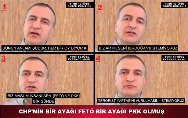 FETÖ'nün firari ismi Ekrem Dumanlı, yayınladığı video ile hükümete ve Cumhurbaşkanı Recep Tayyip Erdoğan'a alçak hakaretlerde bulunurken, CHP, HDP ve İYİ Parti için oy istedi. Mansur Yavaş, Meral Akşener ve Kılıçdaroğlu'na açık destek veren FETÖ'cü Dumanlı, vatandaşlara Millet İttifakı'na oy vermeleri için çağrıda bulundu.