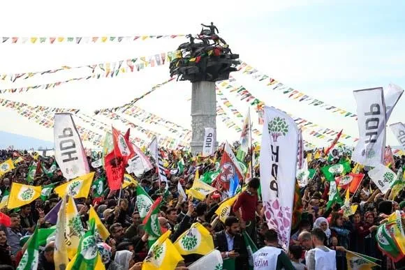 HDP tarafından Gündoğdu Meydanı'nda düzenlenen nevruz kutlamasında terör örgütü PKK lehine sloganlar atıldı. Örgütü simgeleyen bez parçaları açılarak, terör örgütü lehine yazıların yer aldığı afişler asıldı.