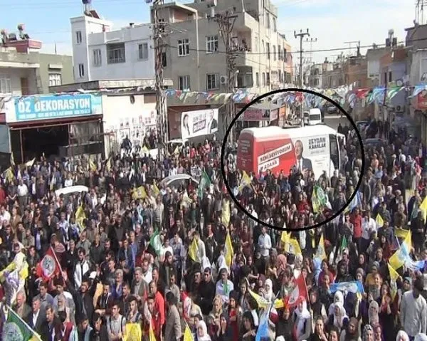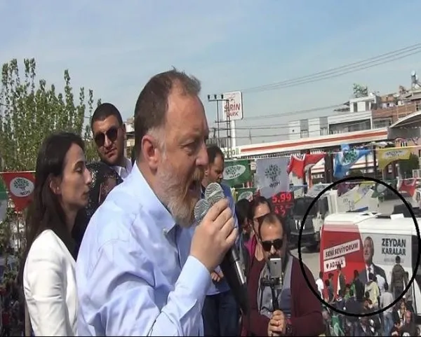 HDP Eş Genel Başkanı Sezai Temelli'nin Adana'daki konuşmasına, CHP'nin adayı Zeydan Karalar'a ait seçim otobüsü ile miting alanlarına seçmen taşındı.