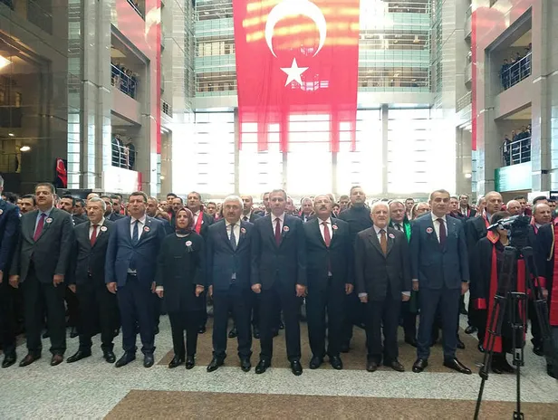 Nitekim, pusuda bekleyen FETÖ militanları durumdan vazife çıkartarak 15 Temmuz gecesi harekete geçmiş, 252 vatandaşımızı şehit etmiş, binlercesini yaralamıştır. Bu girişim planın birer parçalarıdır. Bu planlamanın uygulamasında kullanılanlar sadece basit birer piyondur. Tehdit geçmiş midir, tehlike sona ermiş midir? Tehlike geçmemiştir. Tehdit devam etmektedir. Türkiye Cumhuriyeti'nin etrafı terör unsurlarınca çevrilmektedir. Hepimizin malumudur. Emniyeti, jandarması, askeri, yargısıyla Türkiye Cumhuriyeti büyük bir mücadele vermektedir. Türkiye Cumhuriyeti bu zorlukların üstesinden tarihte de gelmiştir, bugün de gelecektir, yarın da gelecektir.