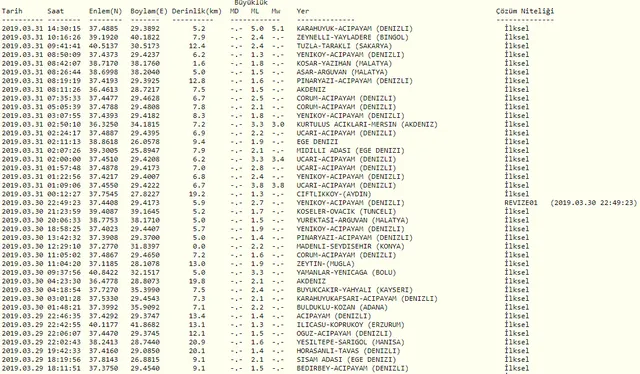 KANDİLLİ RASATHANESİ EN SON DEPREMLER