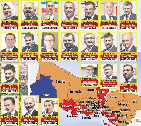 2014'te beri CHP'nin yönettiği Çatalca, Zillet İttifakı'na dur dedi. 31 Mart seçimlerinde ilçede, AK Partili Mesut Üner rekor oyla birinci geldi. Silivri'de de benzer sonuçlar elde edildi. 2014'te CHP'nin yüzde 48 oyla birinci geldiği Silivri'de MHP öne geçti. Volkan Yılmaz yüzde 46.36 ile belediye başkanı oldu.