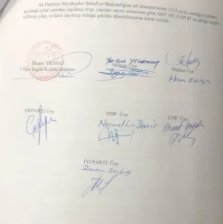 İnceleme sonucu skandal hatalar yapıldığı belirlendi. Maddi hatalar tespit edildi. AK Parti'nin Büyükşehir Belediye Başkanlığı seçimlerindeki çok sayıda oyunun eksik yazıldığı anlaşıldı. Bunun üzerine AK Parti'nin oyları bu ilçede yaklaşık 1304 arttı. AK Parti'nin oylarının başka partilere yazıldığı anlaşıldı.