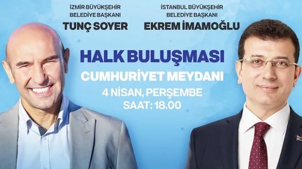 İmamoğlu, burada belediye başkanı seçilen Tunç Soyer'le birlikte 'Halk Buluşması' adı altında miting düzenleyecek. İstanbul'da oyları çalınan AK Parti seçmenine mesaj niteliği taşıyan organizasyon, aynı zamanda Soyer-İmamoğlu ikilisinin gövde gösterisine sahne olacak.