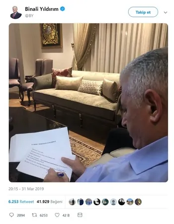 31 Mart saat: 20.15- Binali Yıldırım sosyal medya hesabından fotoğraf paylaştı. Binali Yıldırım'ın paylaştığı fotoğrafta elinde tuttuğu kağıdın üzerinde "31 Mart teşekkür konuşması" yazması dikkat çekti.