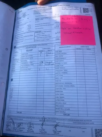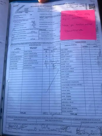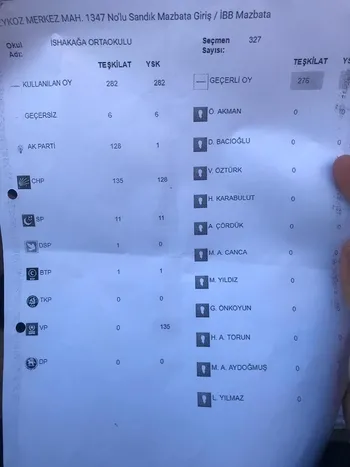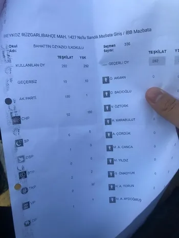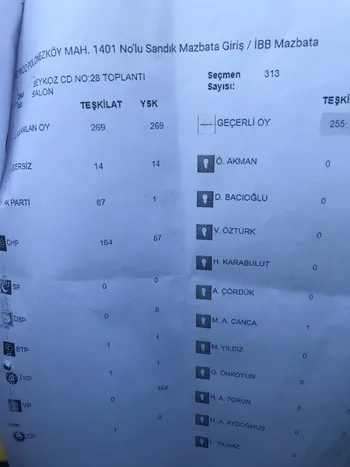 -Beykoz 1427 No'lu sandıkta Yıldırım'ı 180 oyu YSK'ya 1 oy olarak geçirildi.