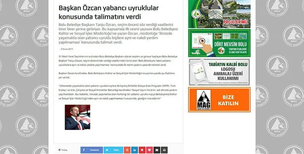 Çocuklarımızın iaşesini veriyoruz. Ben diğer yardım kurumlarına karışamam böyle bir yetkim yok; ama Bolu Belediyesi bütçesinden bir tek Suriyeliye tek kuruş yardım yapmayacağım'. Bunun gereği olarak da bu yazıyı yazdım. Bu çağrı daha önce ülke genelinde yankı bulmuştu. Ülkemizde herkes artık bu durumdan rahatsız. Katlanılmaz bir boyuta geldi" diye konuştu.