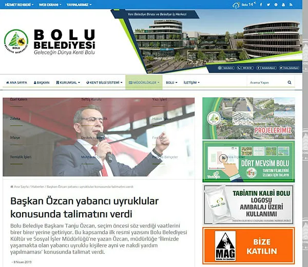 Mahalli İdareler Genel Seçimleri'nde, aday gösterildiği CHP'den Bolu Belediye Başkanlığı'na seçilip, mazbatasını alarak, göreve başlayan Tanju Özcan, kampanya dönemindeki vaatlerinden olan 'Bolu Belediyesi'nden yabancı uyruklulara ayni ve nakdi yardım yapılmaması' talimatını verdi.