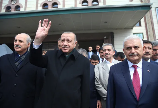 Cumhurbaşkanı Erdoğan cuma namazından Yıldırım, Sağlık Bakanı Fahrettin Koca ve AK Parti Genel Başkanvekili Numan Kurtulmuş ile birlikte çıkarken, AK Parti Ankara Büyükşehir Belediye Başkan Adayı olan Mehmet Özhaseki de aynı camide cuma namazını kıldı.