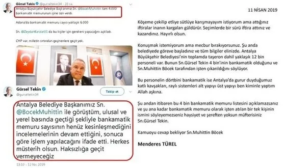 CHP'de iftiranın, yalanın ardı arkası kesilmiyor! "Antalya Büyükşehir Belediye Başkanımız Sn. @BocekMuhittin tam 4.000 bankamatik memurunun işine son verdi" şeklindeki iddiasıyla AK Parti'ye iftira atan Gürsel Tekin, işin aslı ortaya çıkınca çark etti.