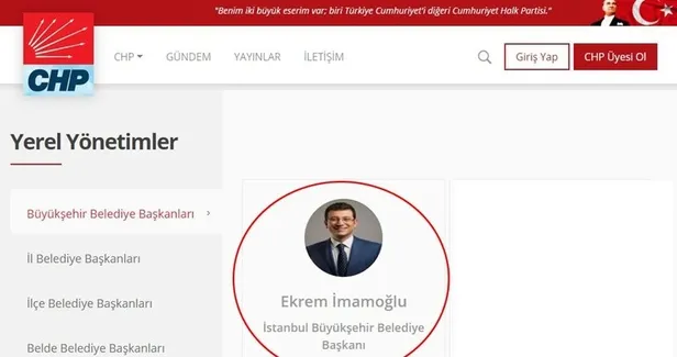 İmamoğlu'nun Anıtkabir ziyareti skandalından sonra CHP'de bir "başkan" provokasyonu daha patlak verdi. CHP, resmi internet sitesinde yer alan 'yerel yönetimler' bölümüne Ekrem İmamoğlu'nu itiraz süreci dolmamasına rağmen İstanbul Büyükşehir Belediye (İBB) Başkanı olarak ekledi.